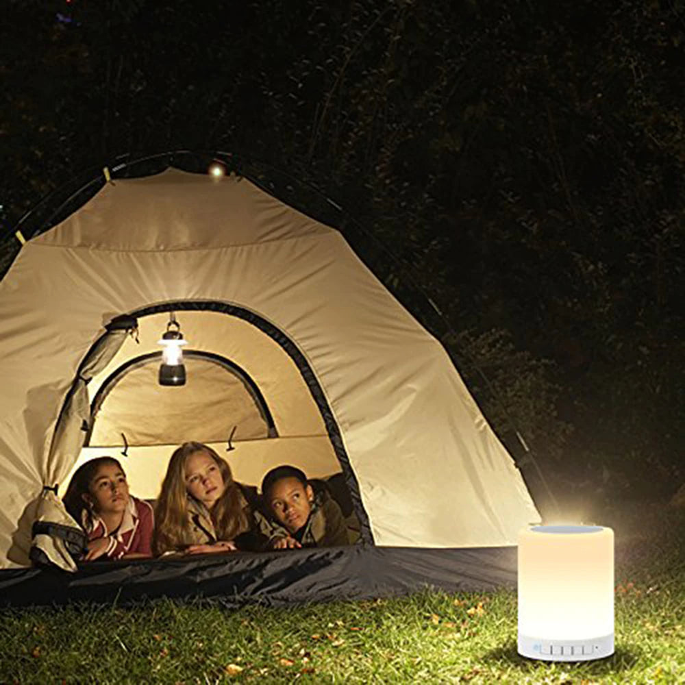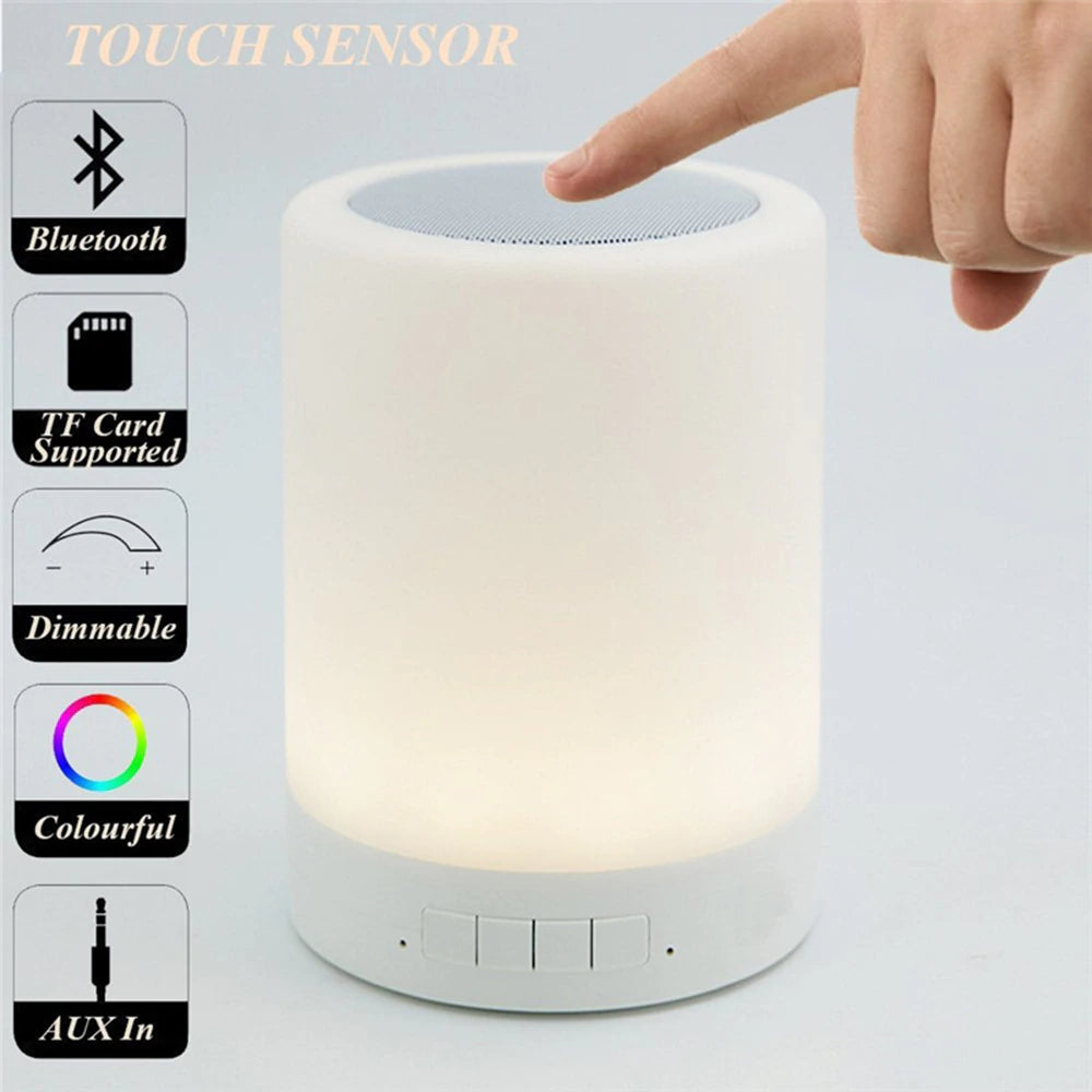 Night Light with Bluetooth Speaker, Portable Wireless Bluetooth Speaker Touch Control Color LED Bedside Table Lamp, Speakerphone / TF Card / AUX-IN / USB Supported (White)