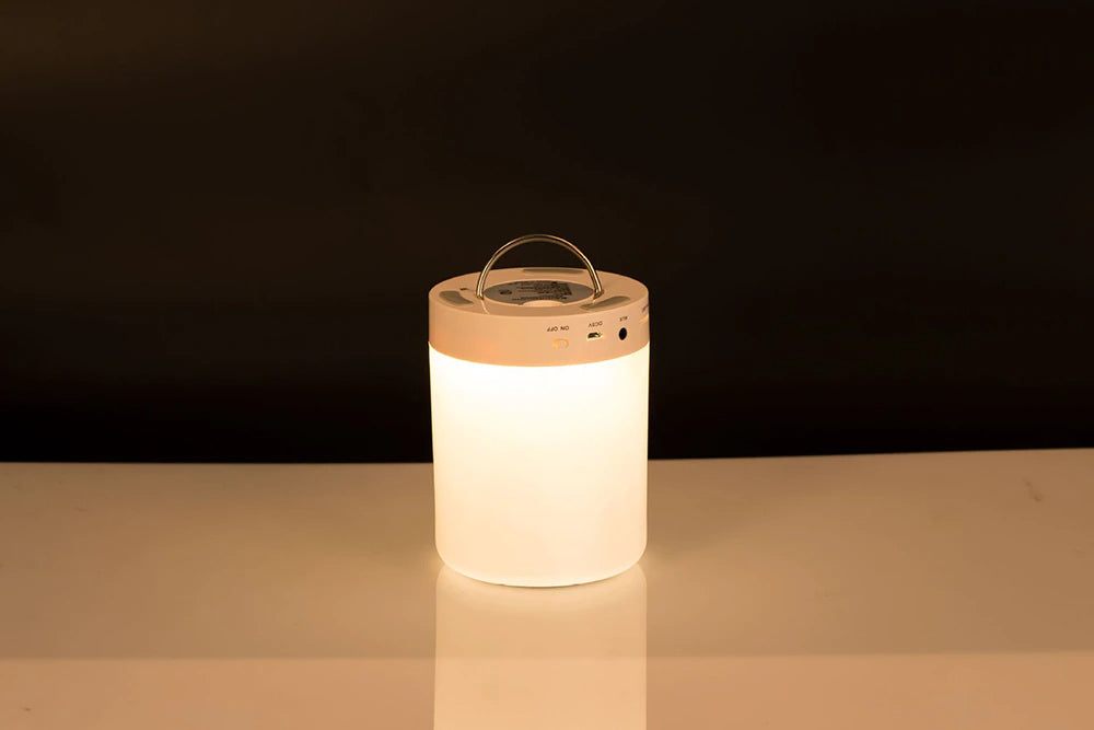 Bedside lamp & speaker with adjustable lighting. You can change its color by touching it. It is also a small bluetooth speaker, which brings you a warm atmosphere and at the same time gives you aural enjoyment. There are a total of 8 color lighting effects and 3 warm white lights. It can accompany you to sleep easily.
